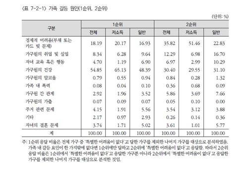 2024년 한국복지패널 조사에 따르면 가족내 근심이나 갈등의 18.2%가 경제적 어려움이 원인이었습니다. |